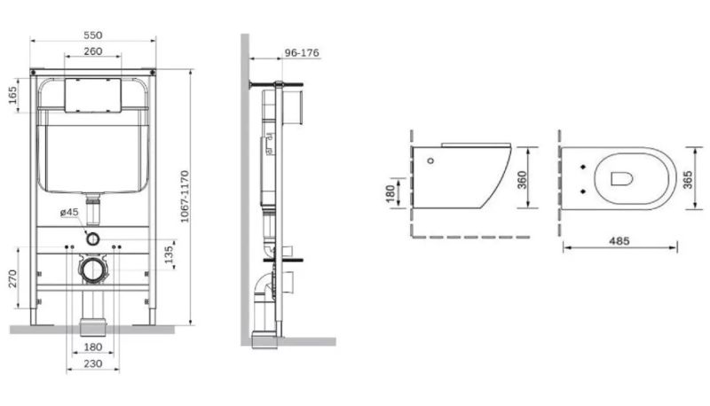 - SL-01 Инсталляция для подвесных унитазов с кнопкой смыва хром овальная.550*1067-1170*96-176