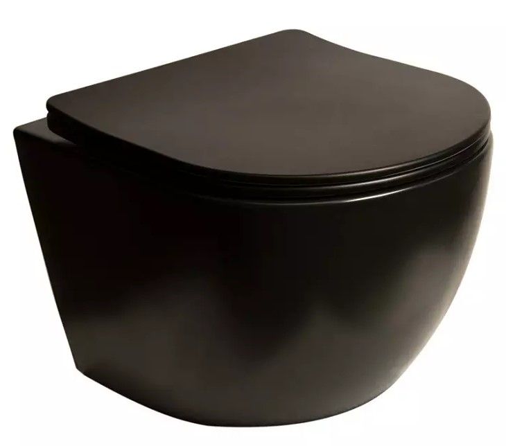 Комплект SantiLine SL-5018MB+SL-03 безободковый чёрный матовый унитаз с сиденьем микролифт и инсталляция с клавишей смыва чёрный матовый купить
