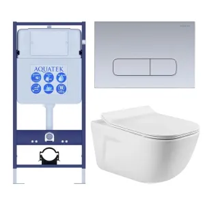 Комплект SET AQUATEK ДИВА-014 4в1 унитаз с инсталляцией кнопкой и сиденьем микролифт