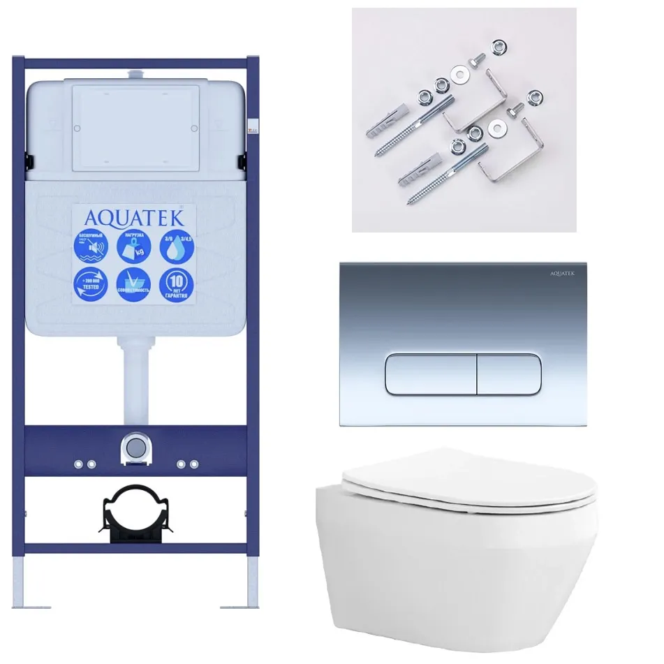 Комплект SET AQUATEK ЛЕЯ Т-016 4в1 унитаз с инсталляцией, кнопкой и сиденьем