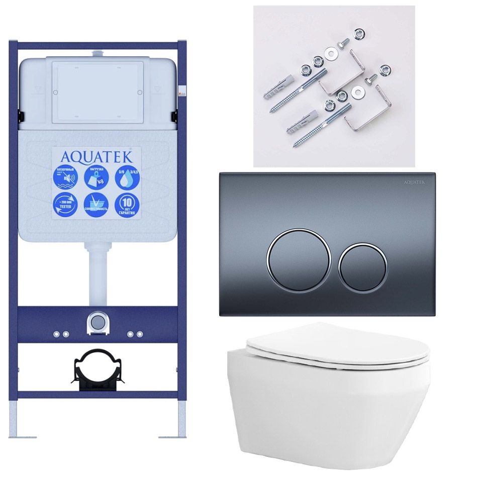 Комплект SET AQUATEK ЛЕЯ Т-035 4в1 унитаз с инсталляцией, кнопкой и сиденьем купить