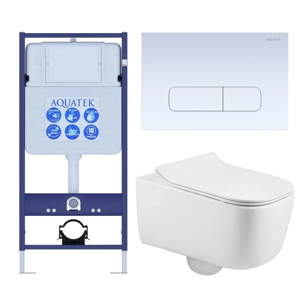Комплект SET AQUATEK ЛУГАНО-013 4в1 унитаз с инсталляцией кнопкой и сиденьем микролифт купить