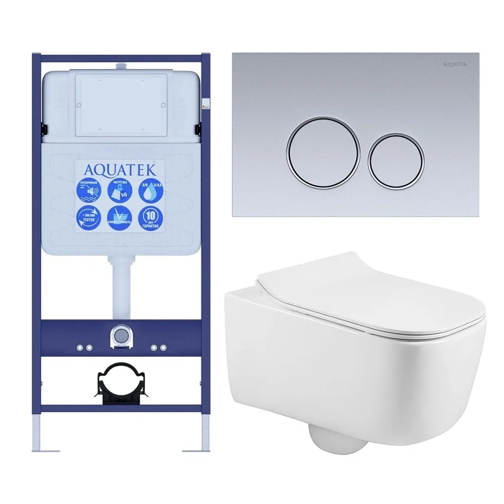 Комплект SET AQUATEK ЛУГАНО-019 4в1 унитаз с инсталляцией кнопкой и сиденьем микролифт купить