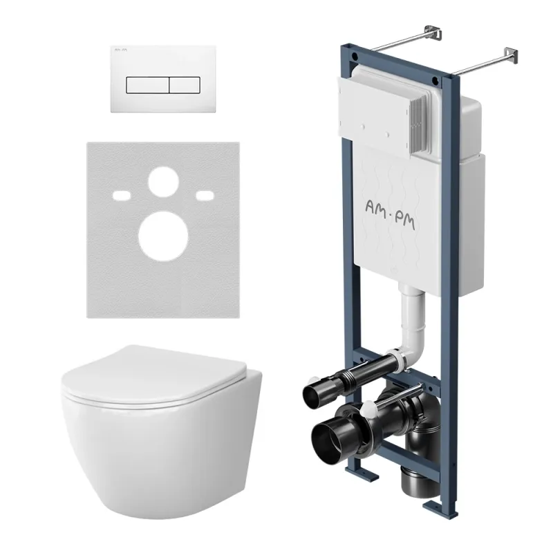 Комплект унитаза с инсталляцией AM.PM Like IS110301.801900 с сиденьем Микролифт и клавишей смыва белой Преимущества и функции: