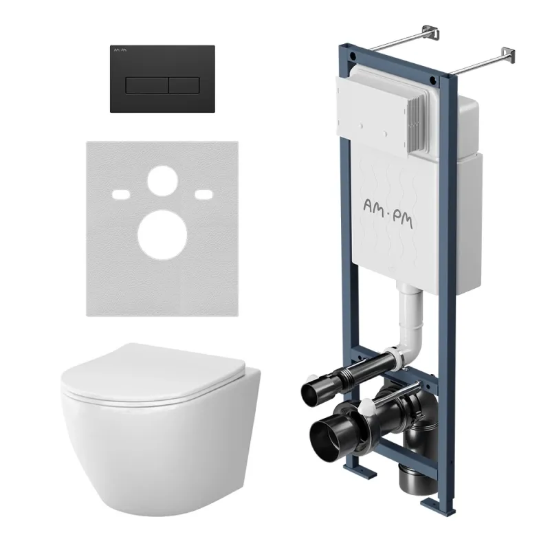 Комплект унитаза с инсталляцией AM.PM Like IS110338.801900 с сиденьем Микролифт и клавишей смыва черной
