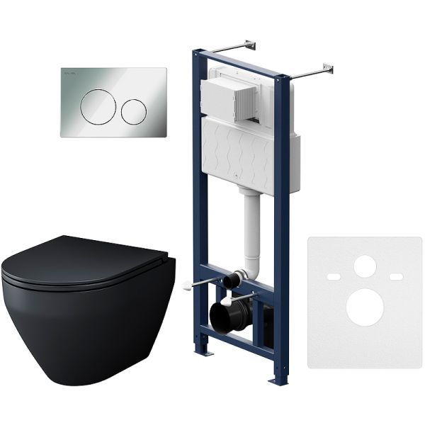 Комплект унитаза с инсталляцией AM.PM Spirit V2.0 FlashClean IS49051.701700MB с сиденьем Микролифт и клавишей смыва Хром глянцевый
