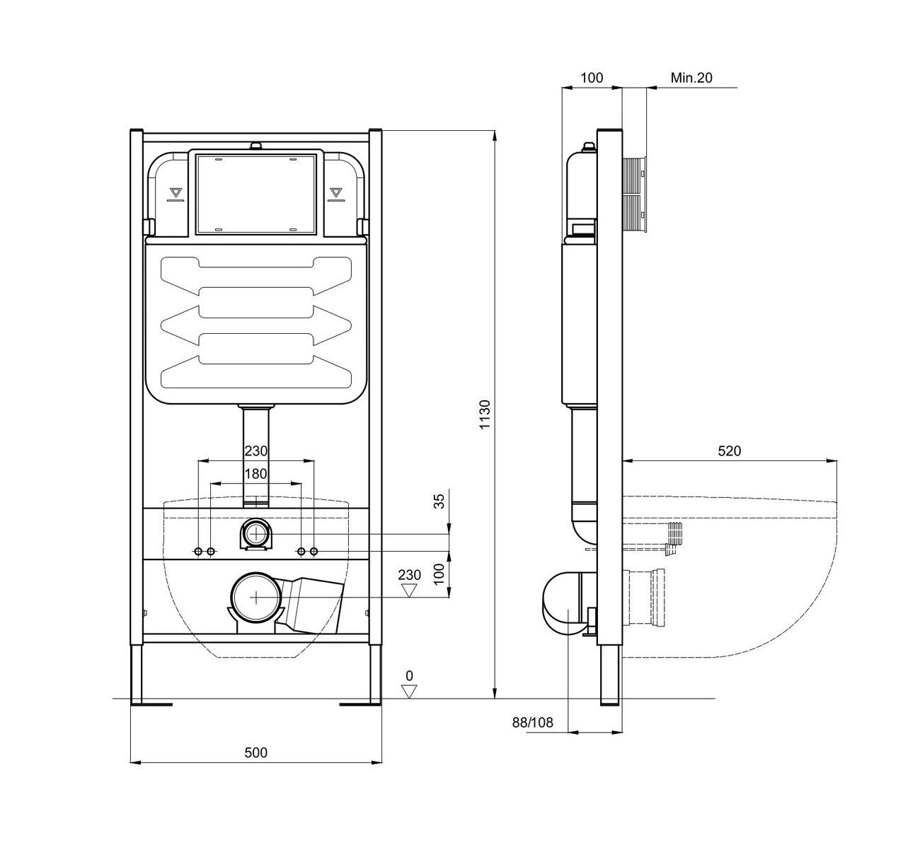 • Панель смыва и крепеж для рамы приобретаются отдельно
