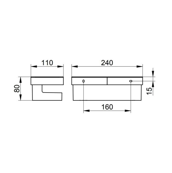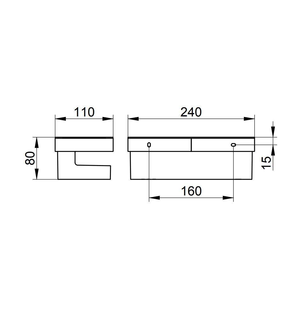 Размеры: ширина - 240 мм, глубина - 110 мм, высота - 80 мм.