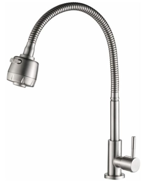 Кран на одну воду Haiba.Изготовлен из нержавеющей стали.Картридж 35 мм.Укомплектован аэратором.С поворотным изливом и режимом "душ".