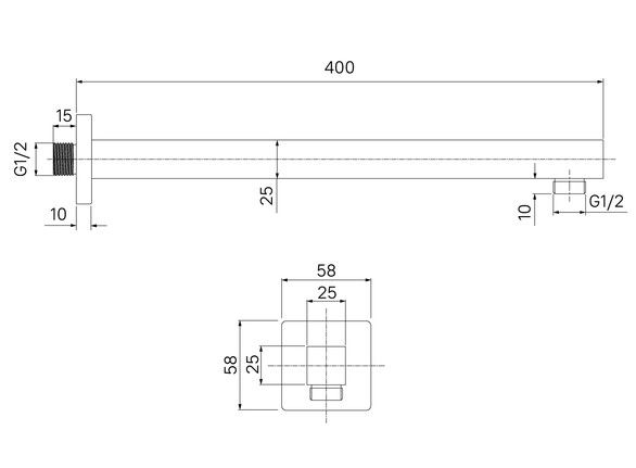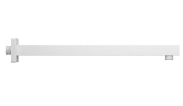 Белый матовый настенный кронштейн для верхней душевой лейки. Квадратное сечение, длина 400 мм. Совместим с любыми белыми верхними лейками IDDIS® с подключением G 1/2, а также с лейками других производителей.