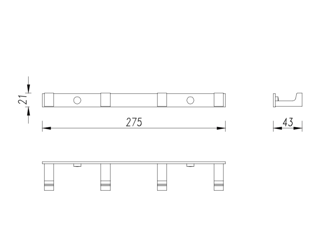 - ширина: 27,5 см, высота: 2,1 см, расстояние от стены: 4,3 см