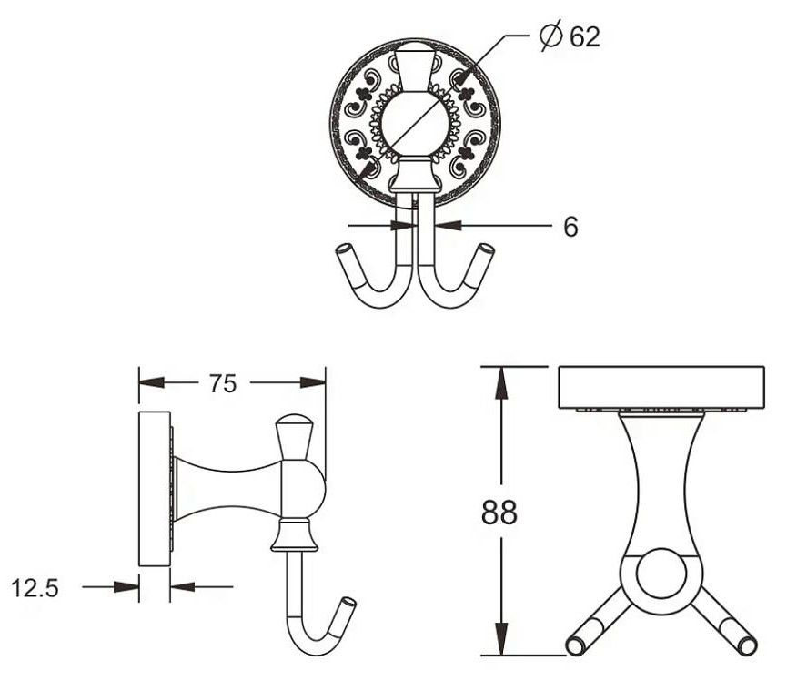 Крючок для ванной комнаты двойной Rose RG1021Q бронза купить