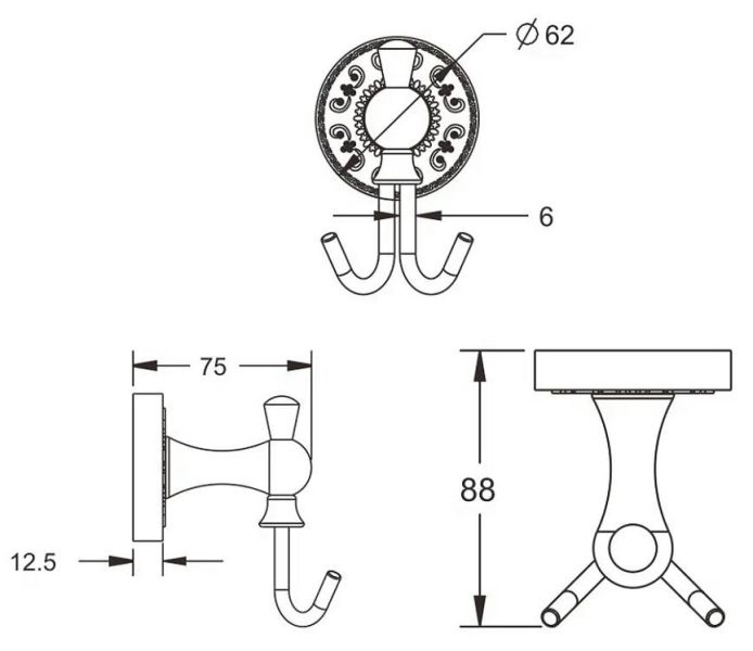 Крючок для ванной комнаты двойной Rose RG1021Q бронза