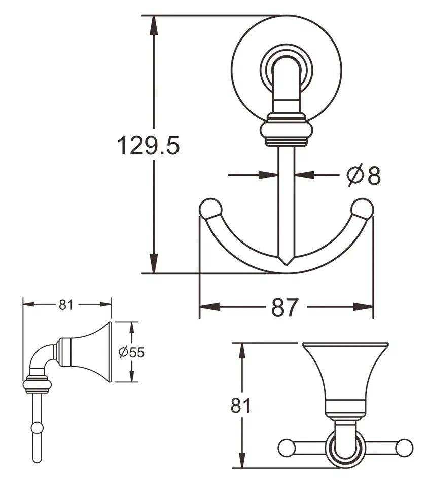 Крючок для ванной комнаты двойной Rose RG1221 хром купить