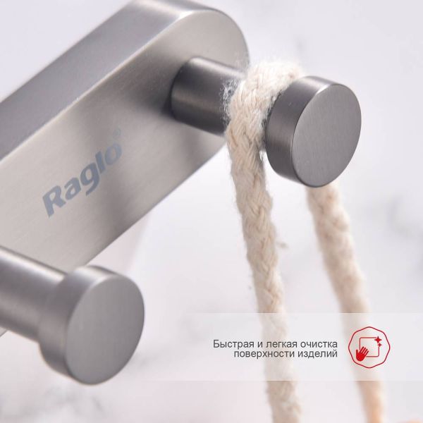 Raglo R300.052.09 Держатель полотенец в ванную, два крючка на планке. Крепление в комплекте.