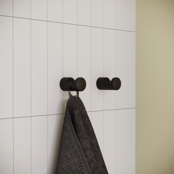 Каждый предмет из новой коллекции NOA минималистичен на вид и максимально функционален, благодаря чему способен выгодно подчеркнуть любой современный или классический дизайн. Коллекция представлена всеми необходимыми аксессуарами для создания единого стиля туалетной или ванной комнаты – с ними ежедневный уход станет еще более комфортным. Одинарный крючок трендового черного цвета будет элегантно смотреться в темных интерьерах и мягко балансировать яркие, цветные. Отличительная особенность аксессуара – оптимально рассчитанная геометрия и форма, позволяющие удобно разместить банные принадлежности.