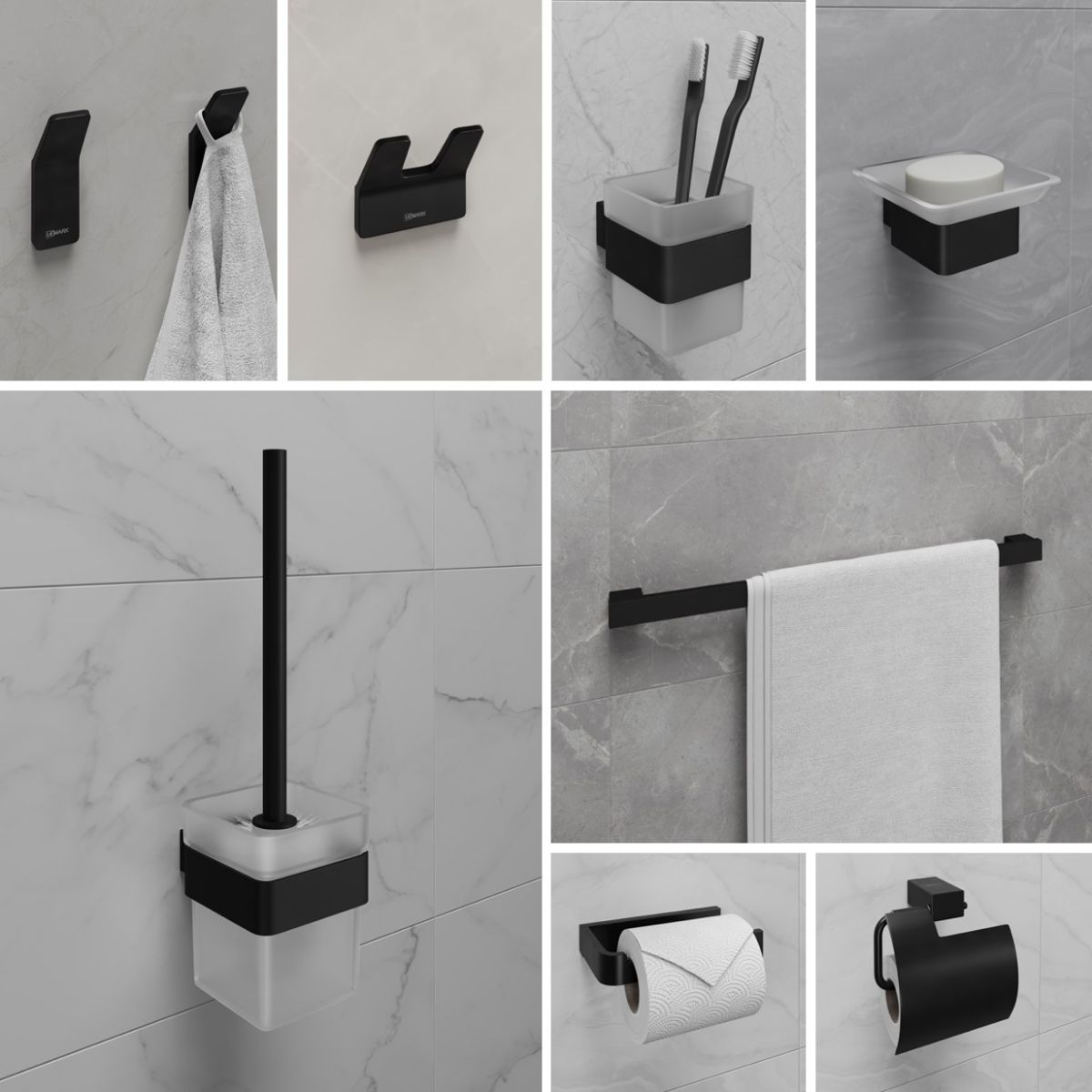 Коллекция представлена в трёх основных цветах: универсальный хром, трендовый чёрный матовый и графит, прекрасно дополнит интерьер ванной и туалетной комнаты, а также добавит функциональности Вашему помещению.