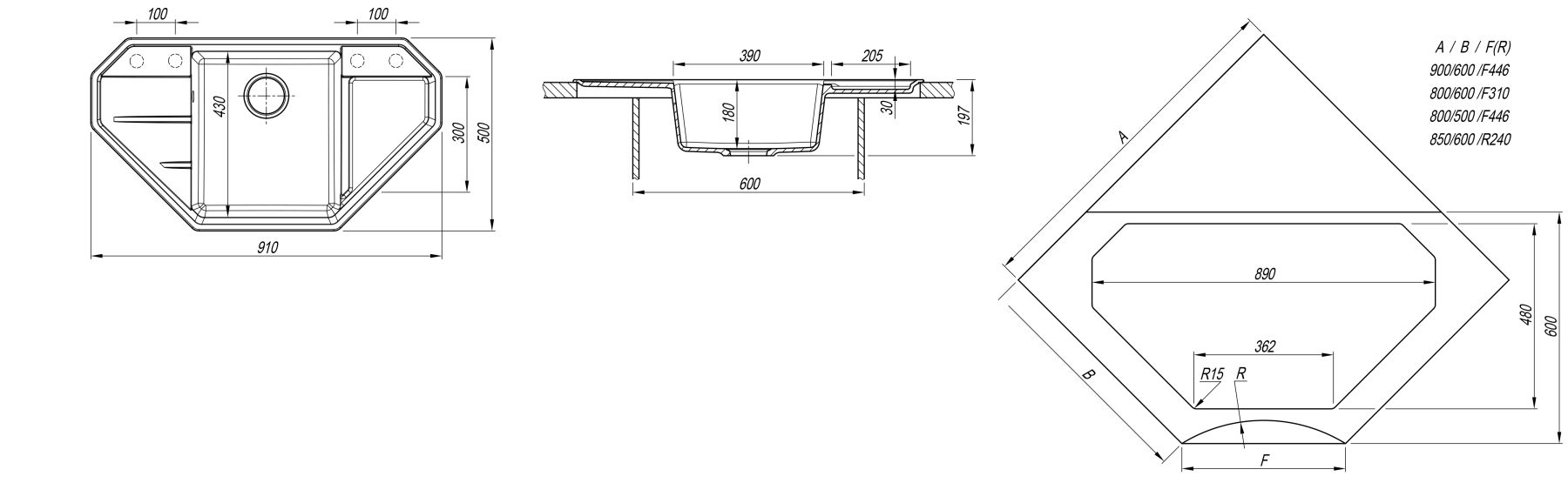 Кухонный блок, мм. 900