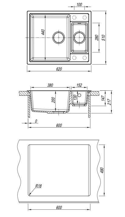 - Современная мойка с малой чашей;