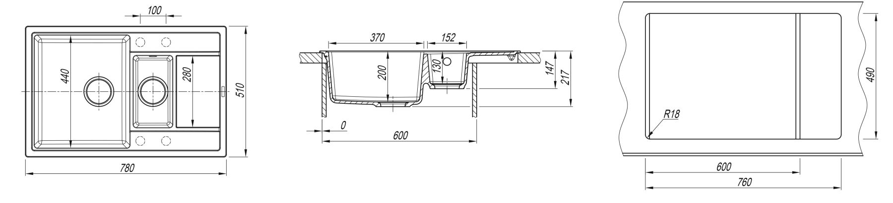 - Практичная мойка с дополнительной малой чашей;