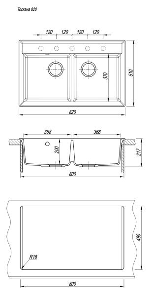 Кухонная мойка Florentina Тоскана 820 антрацит