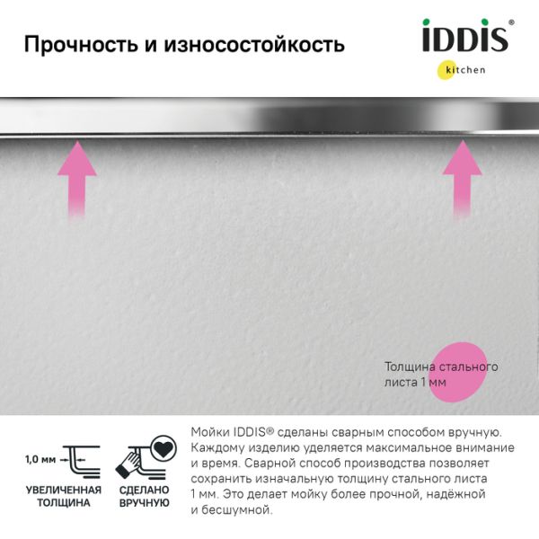Нержавеющая сталь 1 мм – надежная, ударопрочная и стойкая к износу.