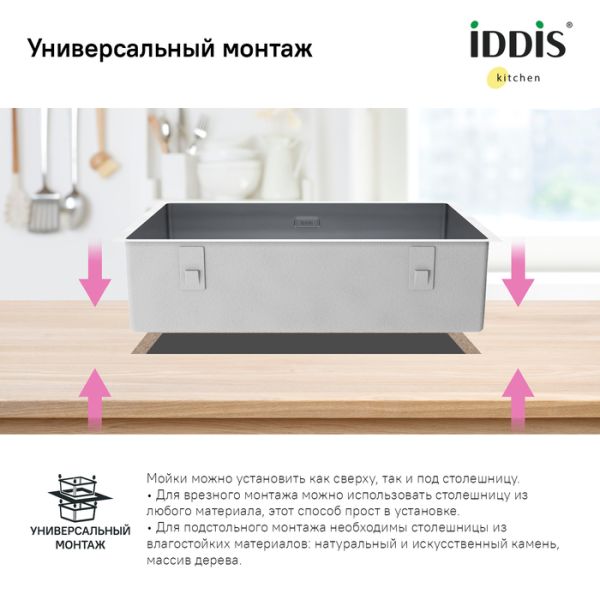 Универсальный монтаж: для врезного и подстольного монтажа.