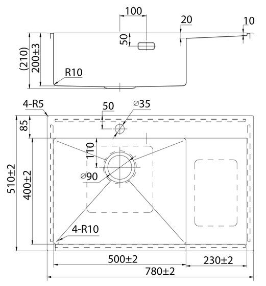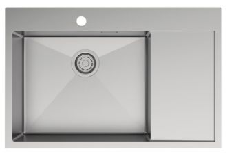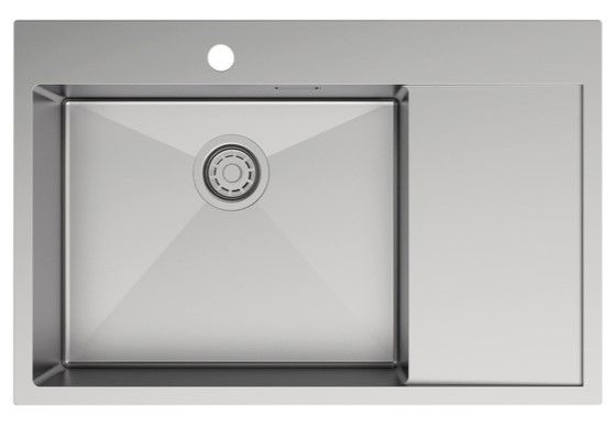 Мойка Haze отличается современным дизайном и ручным методом производства, что позволяет добиться идеальной геометрии – малый радиус скругления углов увеличивает рабочее пространство без «слепых» зон. Удобно разместить много посуды и мыть крупные предметы. Подходит для шкафа от 55 см.