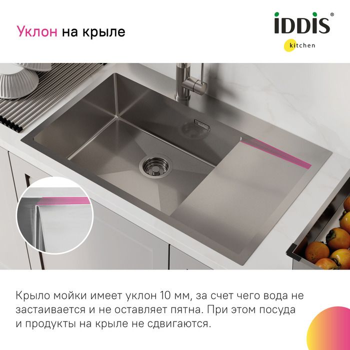Кухонная мойка IDDIS Haze HAZ78SLi77 левая 78см сталь купить