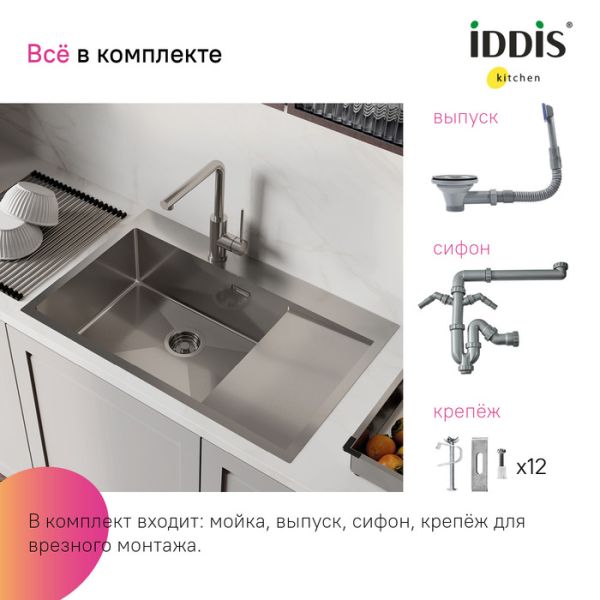 Идеально сочетается по цвету со смесителями IDDIS® ACEBNFFi05, RULSTLFi05, RULSTL0i05, K05STJ0i05, CUBSTP0i05, K05STL0i05, PURBNPFi05, GRABNFLi05. Гарантия на мойки IDDIS® – 15 лет, на выпуск и сифон – 1 год. В зависимости от партии внешний вид мойки и его комплектация могут незначительно отличаться.