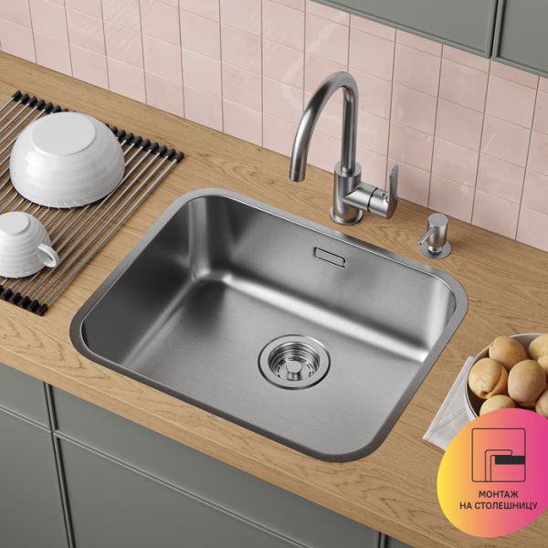 Сатиновая мойка из коллекции Mate – простое универсальное решение для современной кухни по привлекательной цене. Современный лаконичный дизайн без крыла.