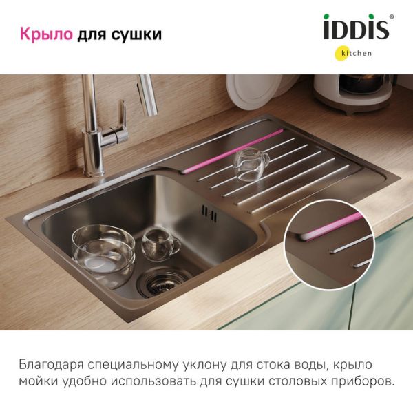 Кухонная мойка IDDIS Sound SND78SDi77 78см сталь купить