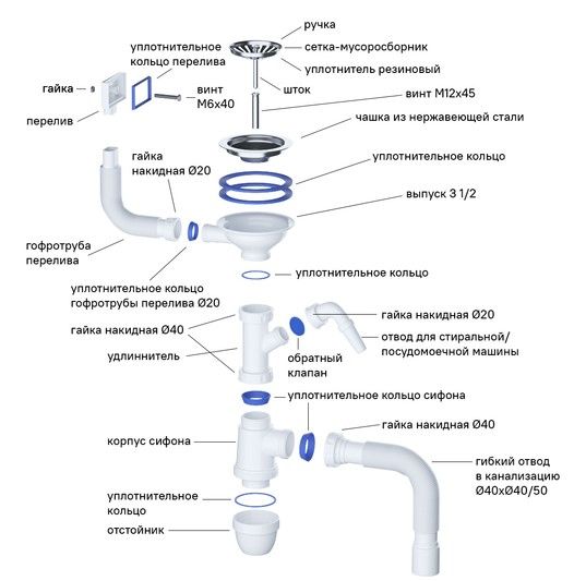 Есть все для монтажа: выпуск, сифон, уплотнительная лента, крепеж.