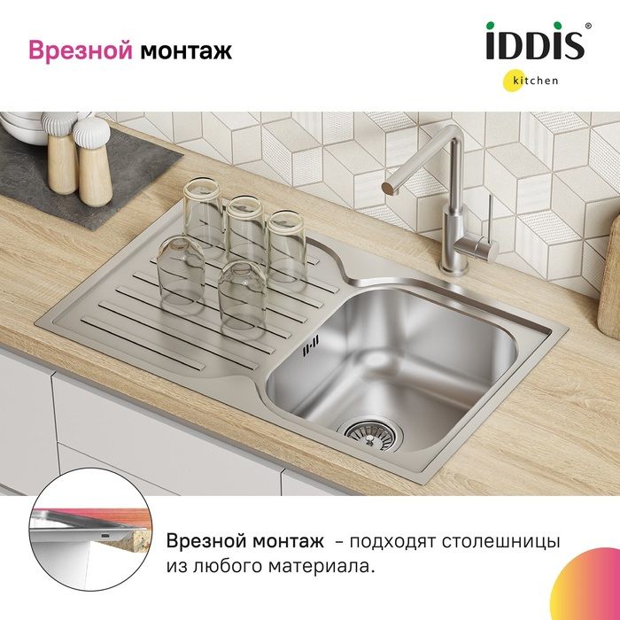 Кухонная мойка IDDIS Strit STR78SDi77 78см сталь купить