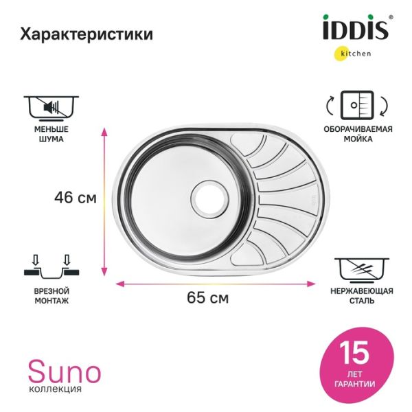 Кухонная мойка IDDIS Suno SUN65SDi77 65см сталь купить