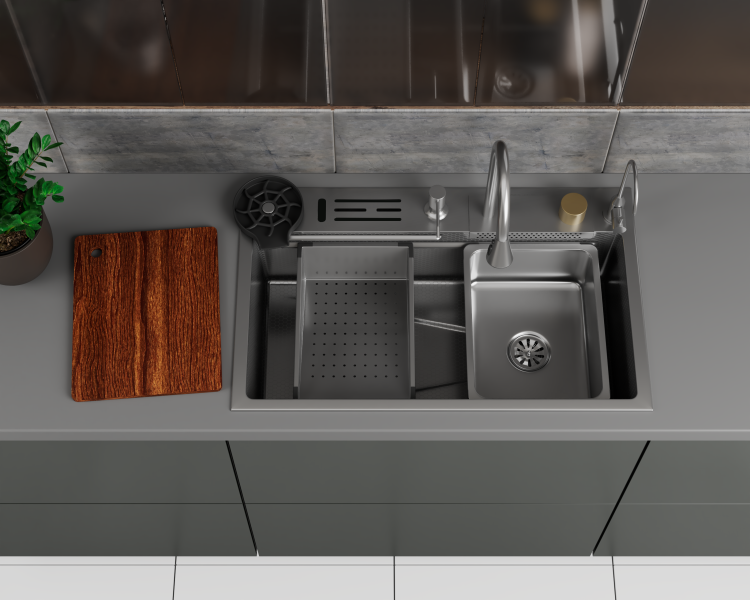 8) Разделочная доска для нарезки продуктов, 2 удобные корзины: одна для мытья и замачивания, вторая с функцией дуршлаг