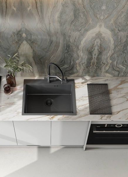 Толщина стали: верх - 3 мм / чаша - 0.8 мм, дополнительное отверстие для установки дозатора