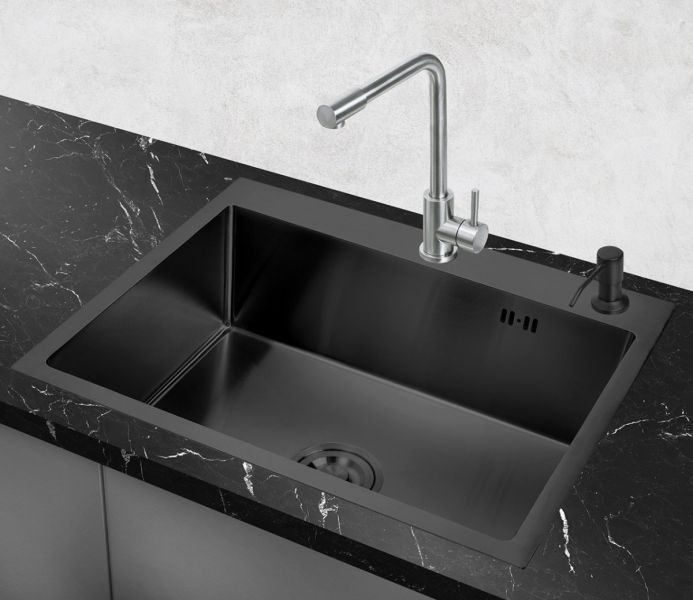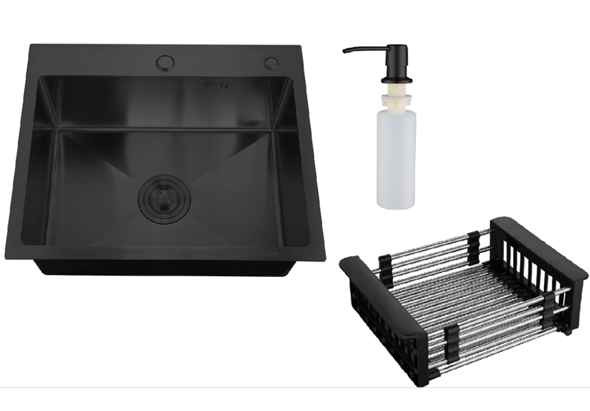 Кухонная мойка РМС MR-5843BL с корзиной и дозатором воронёная сталь купить
