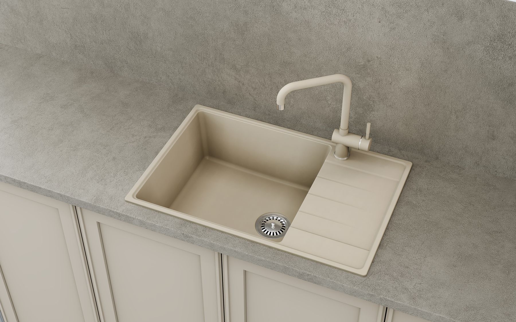 Кухонная мойка ULGRAN Quartz Prima 760 – это односекционная прямоугольная модель с увеличенной чашей и функциональным крылом, изготовленная на современном автоматизированном оборудовании из высококачественных кварцевых композитов по инжекционной технологии (литье под давлением).