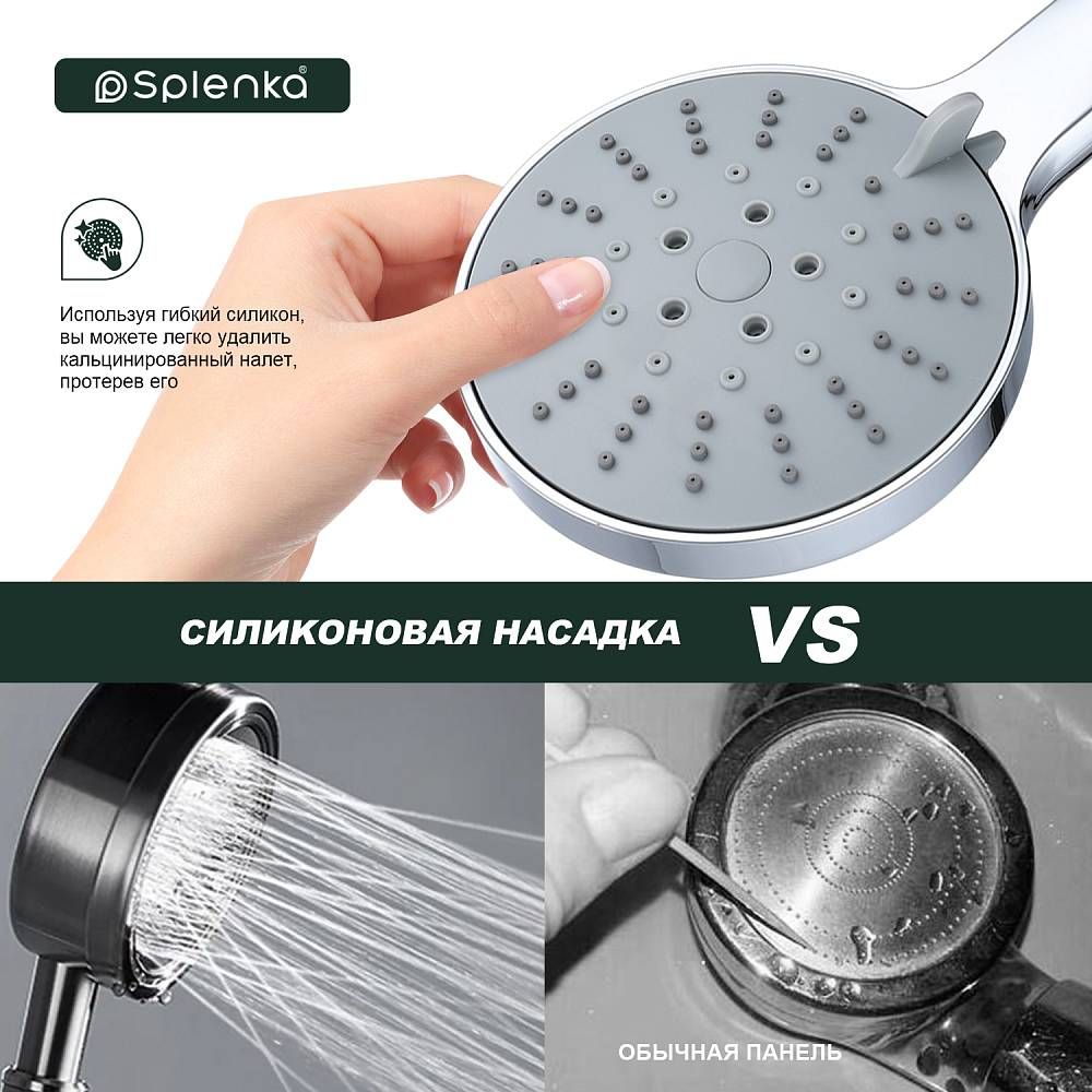 Интерьер создают детали. Именно по этой причине важно выбрать качественную и современную лейку для душевой кабины по разумной цене. Душевая лейка SPLENKA имеет хорошо выполненный современный дизайн, который сочетает в себе техническое совершенство, современные модные тенденции и грациозную классику. Лейка для душа полностью адаптирована для эксплуатации в условиях повышенной влажности окружающей среды, не боится интенсивных перепадов температур. 5 режимов работы душевой лейки, исполнение в цвете хром. Сантехника с брендом высокого класса отличается модным и стильным дизайном, гарантированно высоким качеством и при этом - разумной ценой.