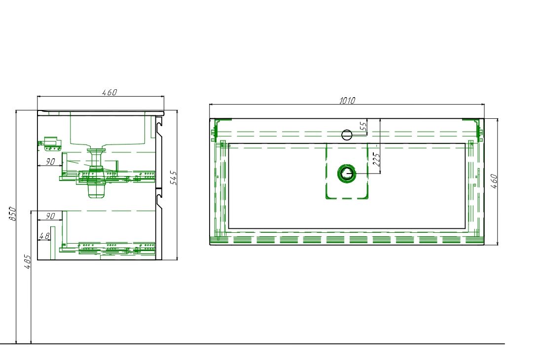 Габариты (ДхШхВ), мм: 1010х460х1701 отверстие под смеситель, встроенный канал переливаДля сифона диаметром 1 1/4 x 32 ммМонтаж накладной (на тумбу)Расположение смесителя: по центру