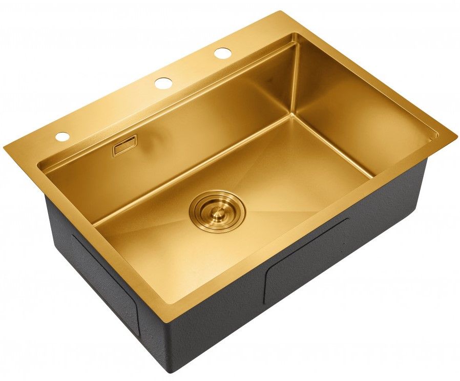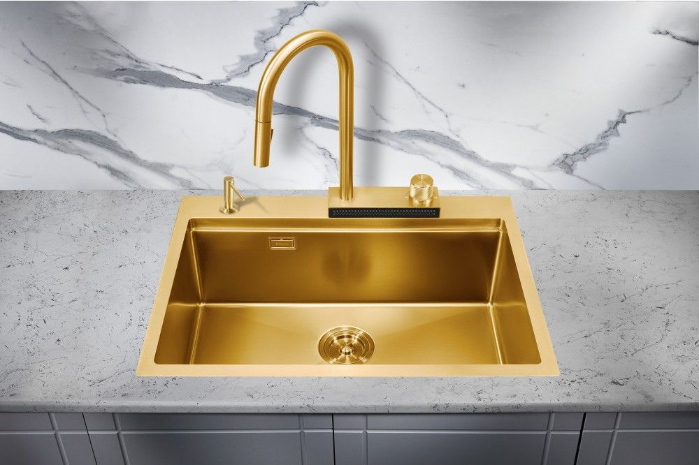 Мойка для кухни Milacio Denia 68 Steel MC.77418 в комплекте со смесителем и коландером брашированное золото купить