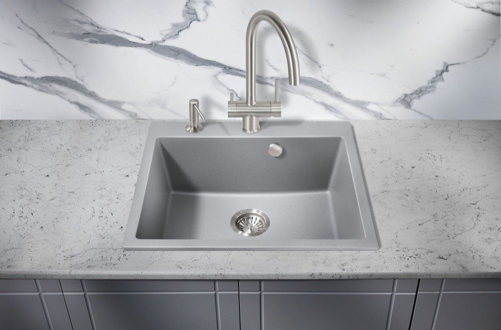 Кухонные мойки MILACIO — испанская роскошь в вашем доме!Каменная врезная прямоугольная мойка для кухни MILACIO Murcia 60 Cuarzo (MC.77013), выполненная в цвете «серый металлик» с матовым покрытием, идеально впишется как в современный, так и классический интерьер. Европейское качество, соответствующее международным стандартам! Раковина изготовлена из искусственного камня — высококачественного кварцевого композита, устойчивого к царапинам, что гарантирует сохранение привлекательного внешнего вида мойки на долгие годы. Глубокая чаша имеет достаточно места для мытья крупной и мелкой посуды, благодаря чему процесс уборки после завтрака, обеда и ужина становится простым и удобным. Компактный удобный сифон сохранит много полезного места в тумбе. Раковина имеет три намеченных отверстия для смесителя, что облегчает процесс установки.В комплектацию входят: кварцевая мойка для кухни (1 шт.), сифон с выпуском и переливом (1 шт.), корзинчатый вентиль (1 шт.), коронка с алмазным напылением (1 шт.), паспорт/гарантийный талон (1 шт.), надежная упаковка (1шт.).Свойства: - мойка изготовлена из прочного, износостойкого материала;- поверхность раковины устойчива перед экстремальными температурами;- материал нетоксичен и безопасен для пищевых продуктов;- конструкция имеет правильную прямоугольную геометрическую форму и легко устанавливается в столешницу;- простой уход: даже самые стойкие пятна легко удаляются простыми чистящими средствами;- вода не растекается по поверхности, что обеспечивает низкий уровень влажности и загрязнения;- материал обладает высокими шумоподавляющими свойствами, благодаря чему мойка не гремит во время использования.
