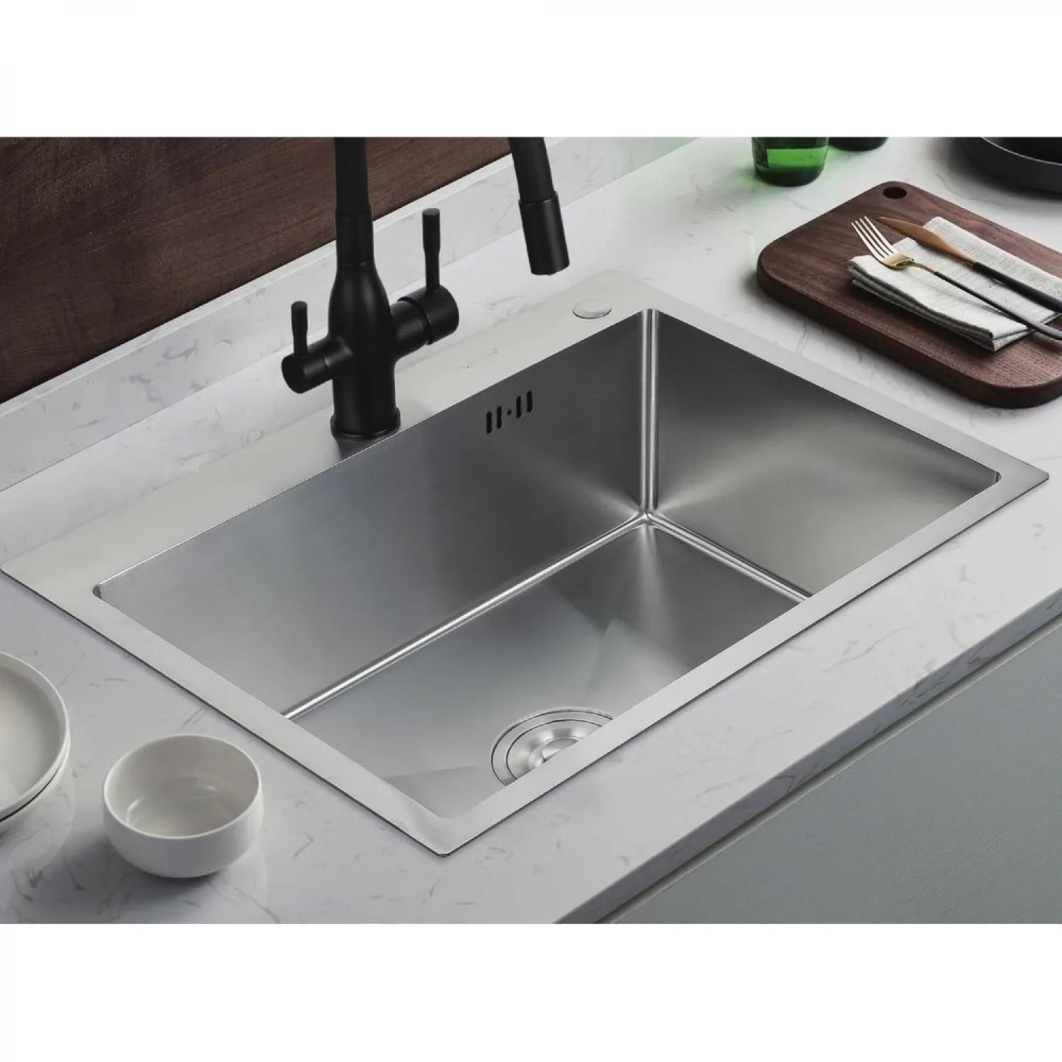 Мойка из нержавеющей стали – это удобное и функциональное решение для вашей кухни. Оборудована коландером, который позволяет легко процеживать продукты и сливать воду после мытья овощей и фруктов. Изготовленная из прочной нержавеющей стали, мойка обеспечивает долговечность и стойкость к коррозии. Благодаря глянцевой поверхности, она легко моется и сохраняет свой блеск на долгое время. Также устойчива к царапинам и воздействию высоких температур. Мойка с коландером предлагает удобство и функциональность в использовании, что делает ее отличным выбором для современной кухни. Приобретите нашу мойку для кухни из нержавеющей стали и наслаждайтесь удобством и функциональностью каждый день!