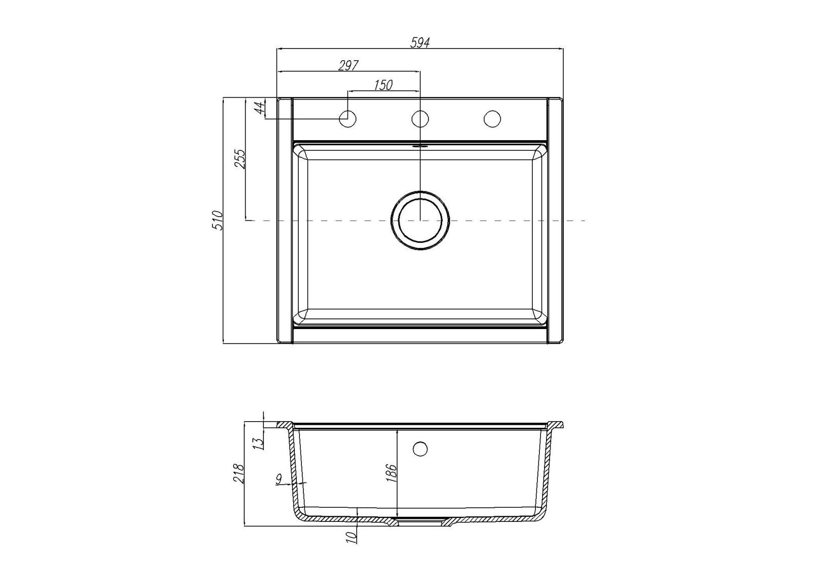 Отверстия под смеситель:1