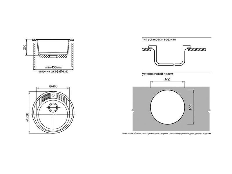 Мойка кухонная GranFest Чёрная Rondo R-520 чер купить