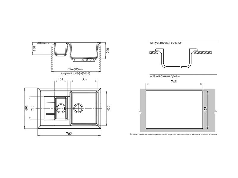 Размеры чаш: 337х420х200 мм, 151*280*150 мм