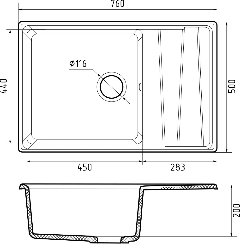 Мойка кухонная GranFest LEVEL LV-760L серый