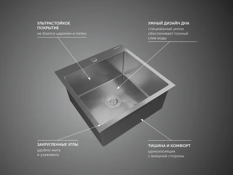 Мойка кухонная GranFest METAL 5050 нерж Нержавеющая сталь