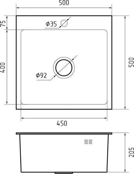 Размер чаши: 450 * 400 * 205 мм